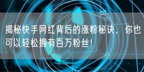 随着互联网的发展,社交媒体已经成为人们生活中必不可少的一部分。越来越多的人希望通过社交媒体平台展示自己的才华和魅力,成为网红。本文将带你深入了解快手网红背后的涨粉秘诀,让你轻松拥有百万粉丝!