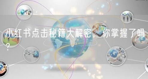 掌握小红书点击秘籍,提升社交媒体推广效果。通过优化内容创作、封面设计、社交平台互动和广告投放等方面,轻松获取更多流量。在竞争激烈的社交媒体中脱颖而出,实现品牌和个人推广的目标。