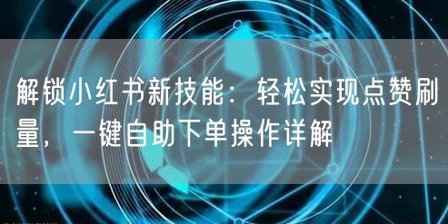 小红书作为一个社交平台,拥有庞大的用户群体和巨大的流量。本文将为你解锁一项新技能,教你如何轻松实现点赞刷量,并通过一键自助下单操作,快速提升你在小红书的影响力。