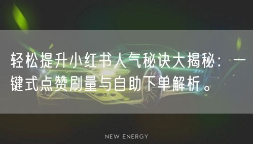 小红书作为一个热门的社交媒体平台,吸引了众多用户在此分享生活点滴。如何在这个竞争激烈的平台上提升人气,成为每个用户关注的焦点。本文将为你揭秘轻松提升小红书人气的秘诀,包括一键式点赞刷量与自助下单等实用方法。